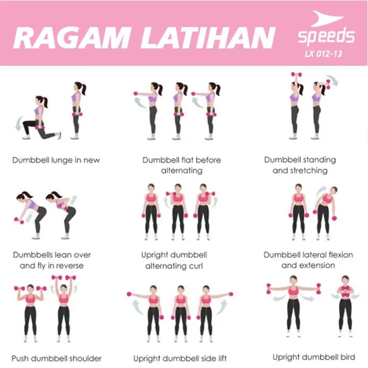 Description Olahraga Dumbell merupakan olahraga yang cepat dan bermanfaat hanya dengan latihan 15 menit. Olahraga ini dapat membentuk otot, menghilangkan lemak yang ada di tubuh. Latihan beban memang dapat membuat tubuh berotot jika dibarengi dengan diet ketat.