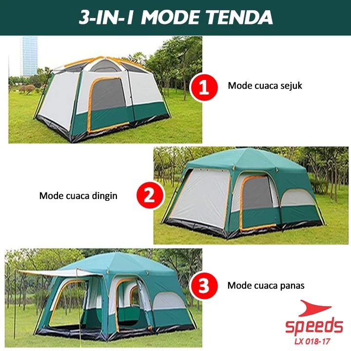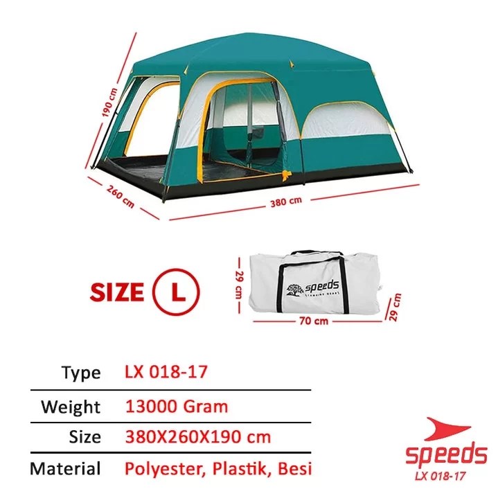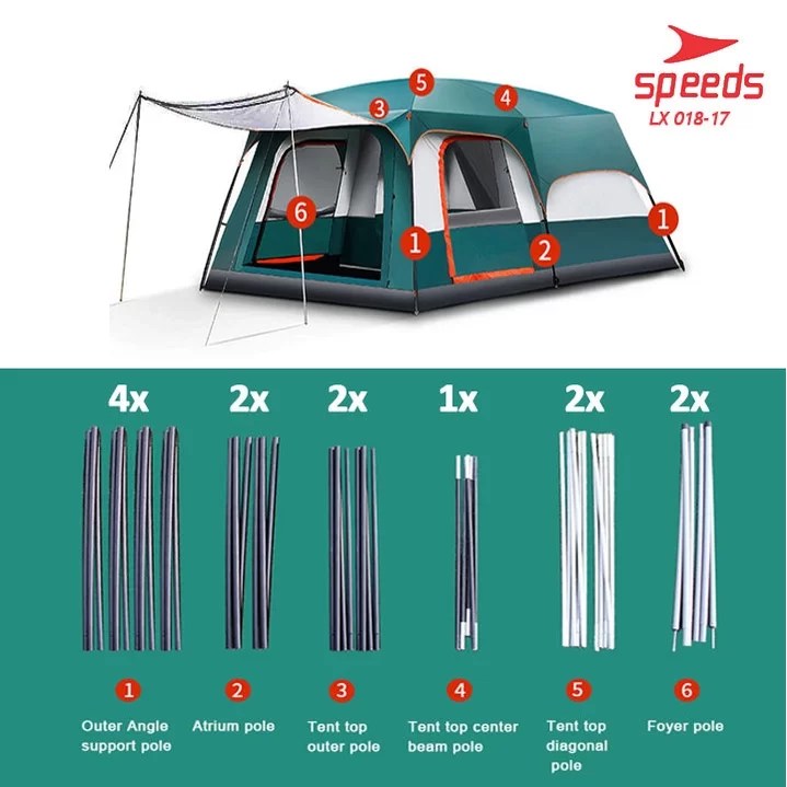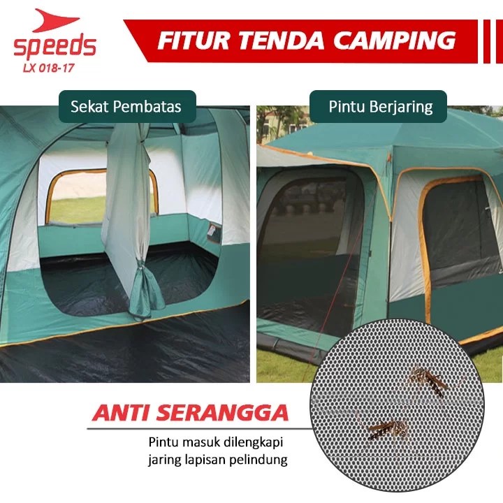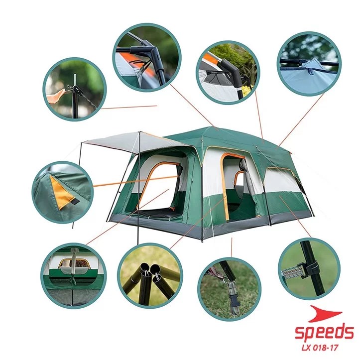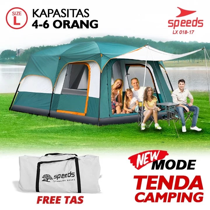 SPEEDS Tenda Camping Tenda Kemah Ultralarge Kapasitas 4-6 Orang Tenda Keluarga Kanopi Double Layer 018-17 - Speeds Indonesia Grosir Official